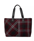 Сумка виконана в класичному тартановому принті — поєднання чорного, червоного та білого кольорів виглядає дуже ефектно і трохи з “британським” настроєм.